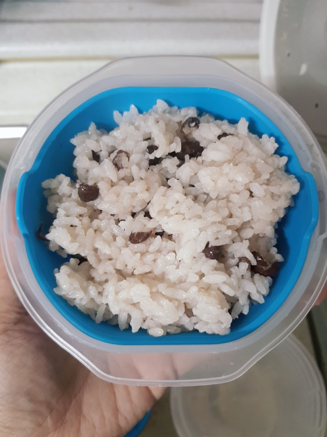 소분한 밥 용기에 뚜껑을 잘 덮어줍니다. 밥이 마르거나 냄새가 배는 것을 방지해줍니다.