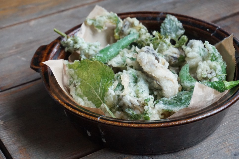 함께 튀기는 고추와 깻잎은 굴과는 달리 튀김옷을 아주 얇게 입히거나, 혹은 튀김옷 없이 그대로 튀겨도 좋습니다. 이렇게 하면 채소 본연의 아삭함과 향을 더 잘 살릴 수 있습니다. 튀겨진 굴튀김과 채소 튀김은 키친타월을 깐 접시 위에 올려 기름기를 제거한 후, 따뜻할 때 바로 즐기시면 최상의 맛을 경험하실 수 있습니다.