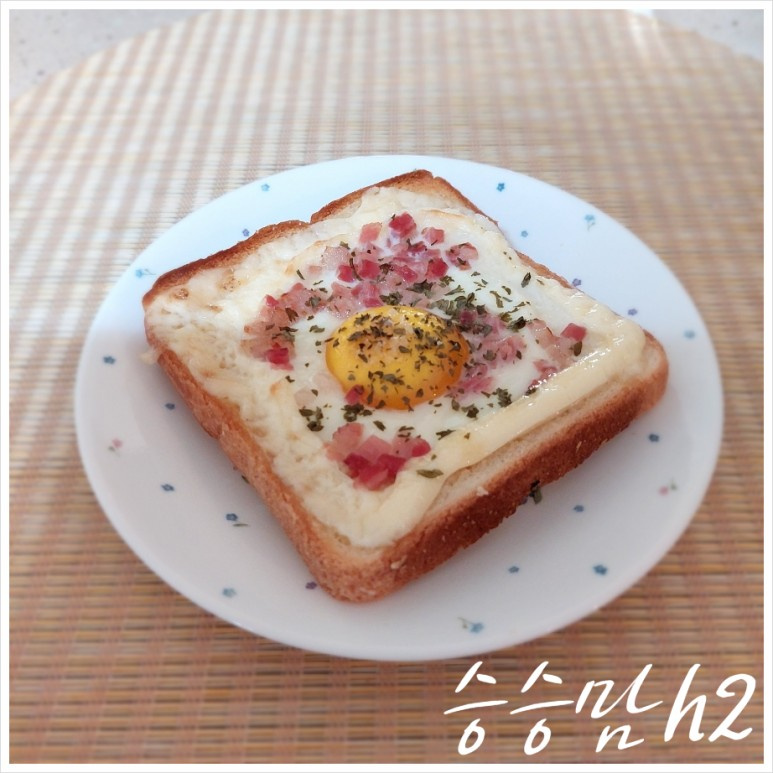 마요네즈로 테두리를 만든 공간 안쪽에 신선한 계란 2개를 조심스럽게 깨뜨려 넣어주세요. 노른자가 터지지 않도록 주의하며, 마치 작은 둥지를 만드는 것처럼 예쁘게 담아주시면 됩니다.