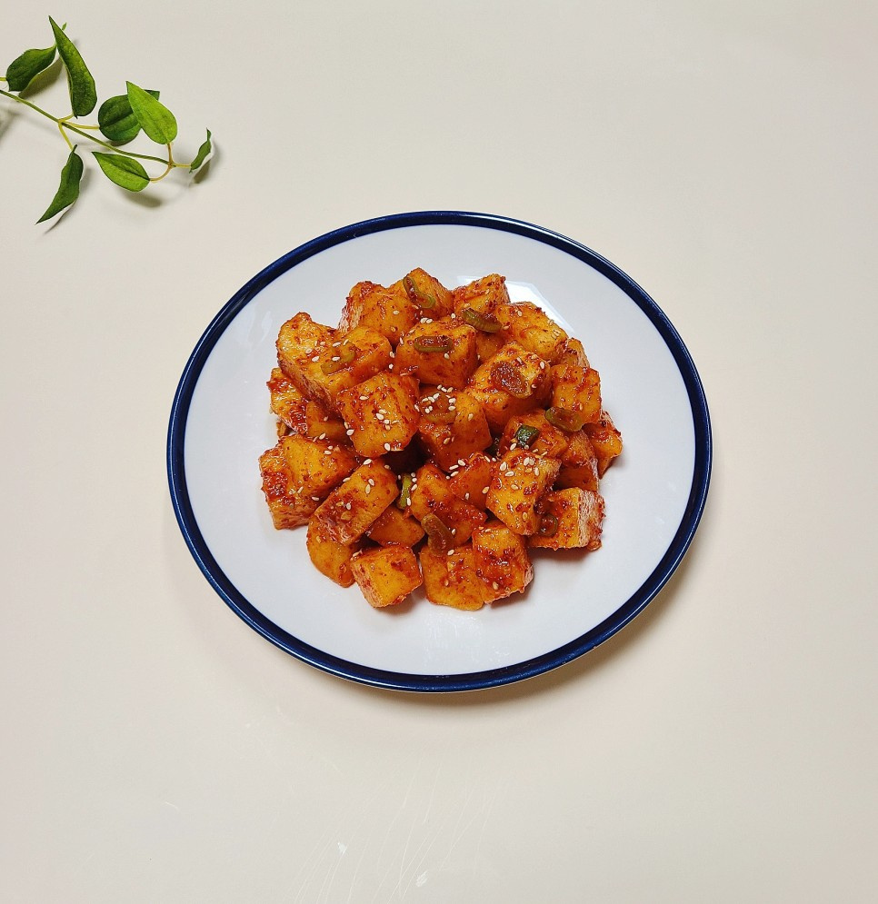 별다른 재료 없이도 뚝딱 만들 수 있는 배깍두기입니다. 달콤한 배의 과육과 아삭한 식감이 어우러져, 밥반찬으로도, 김치 대용으로도 아주 훌륭해요. 버무려서 바로 즐길 수 있어 더욱 간편하답니다.