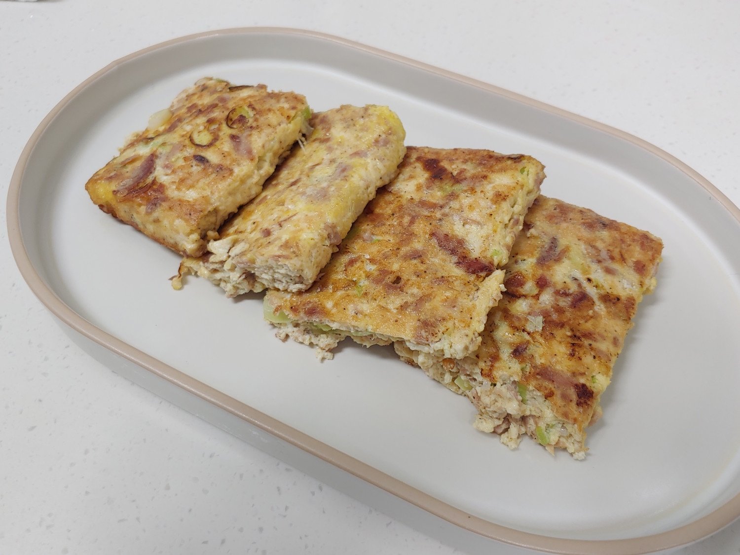 전이 너무 크거나 두꺼워서 한 번에 뒤집기 어렵다면, 칼이나 뒤집개를 이용해 몇 등분으로 잘라준 후 뒤집으면 훨씬 수월합니다. 앞뒤로 노릇하게 구워 완성된 참치두부전은 접시에 예쁘게 담아 맛있게 즐기시면 됩니다. 막걸리와 함께라면 더욱 좋습니다!