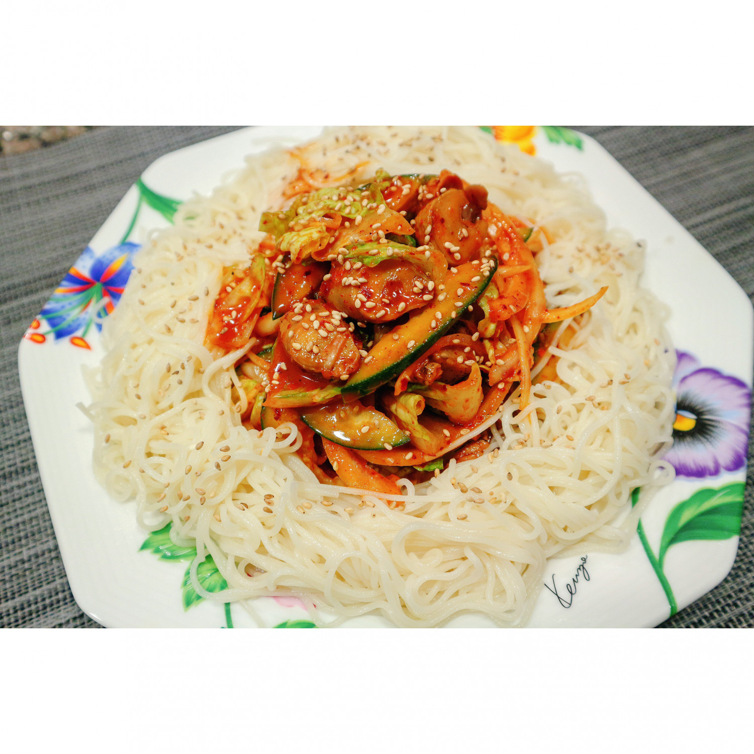 잘 삶아진 소면은 건져내어 흐르는 찬물에 충분히 헹궈 전분을 제거해주세요. 찬물에 헹궈주면 면발이 서로 달라붙지 않고 탱탱한 식감을 살릴 수 있습니다.