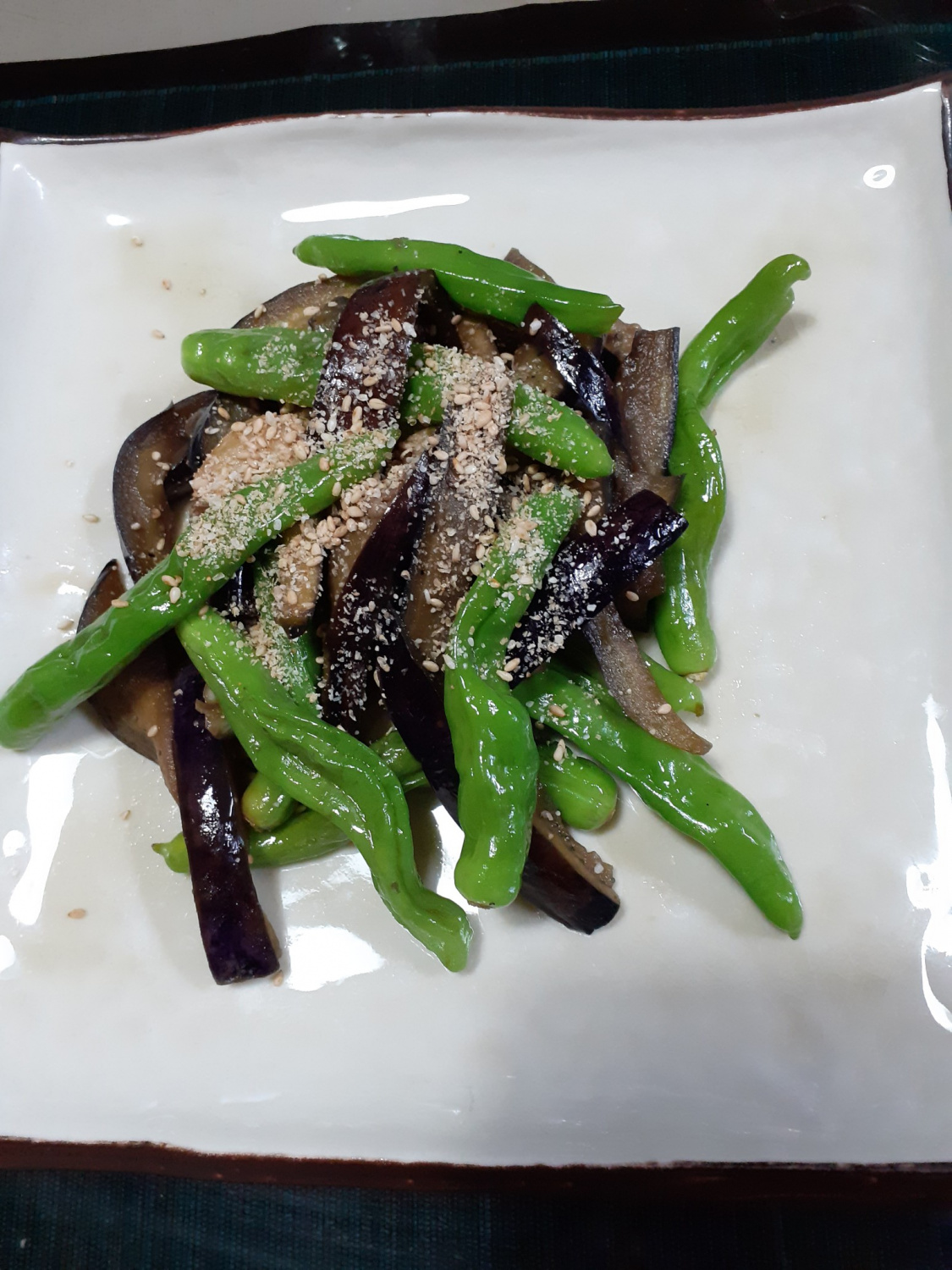 마지막으로, 갈아둔 참깨(깨소금)를 넉넉하게 뿌려주면 맛있는 꽈리고추 가지볶음이 완성됩니다! 따끈한 밥과 함께 맛있게 즐겨보세요.