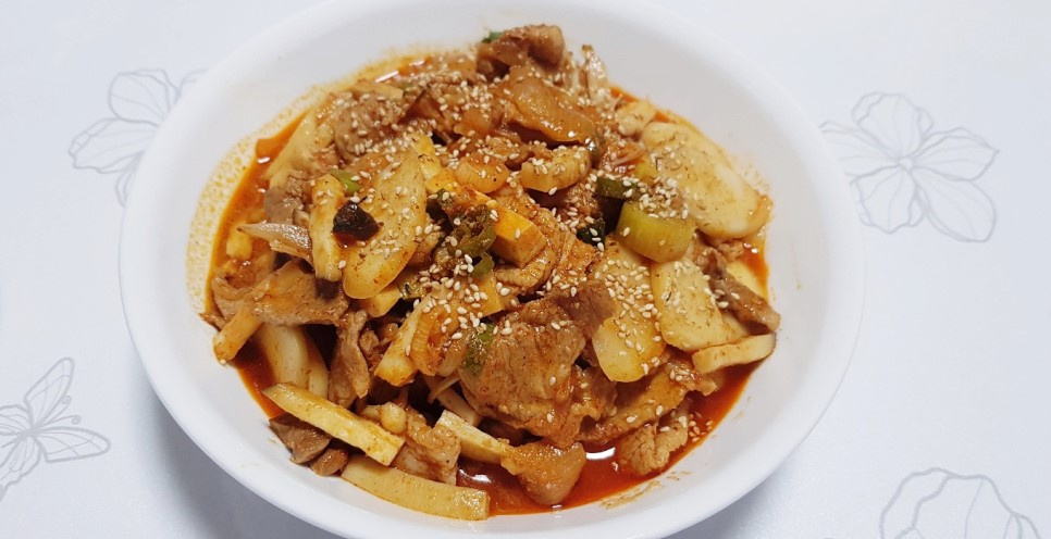 아이들 반찬으로도, 특별한 날 메뉴로도 손색없는 제육볶음입니다. 텁텁한 맛은 줄이고 깔끔함과 감칠맛을 살렸어요. 쫄깃한 떡국떡이 들어가 씹는 재미까지 더해져 온 가족이 맛있게 즐길 수 있답니다. 간단하면서도 근사한 한 끼 식사로 제격이에요!
