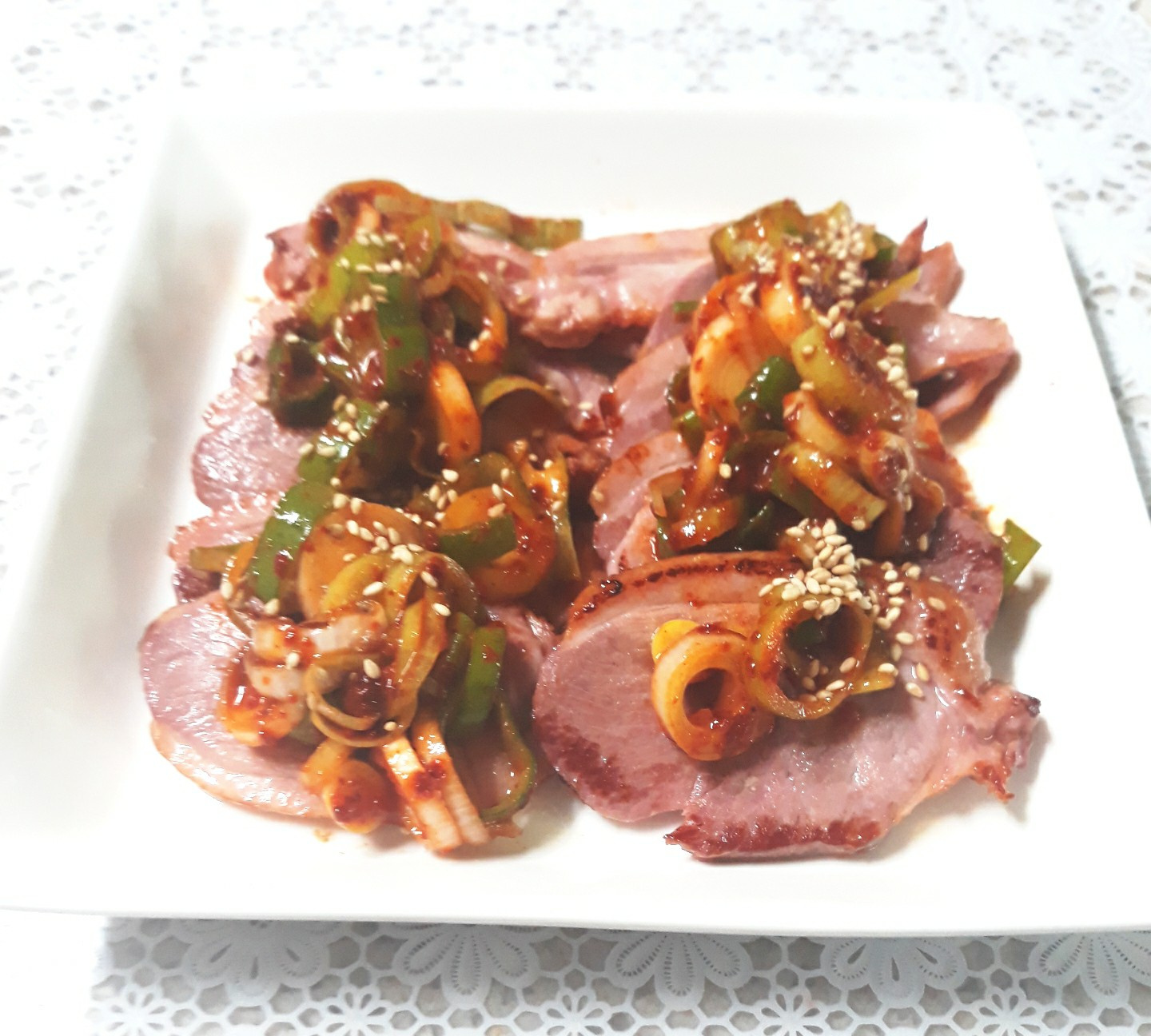 매콤달콤 훈제오리구이와 아삭한 대파무침