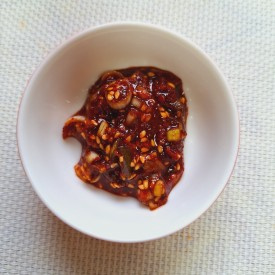 짜잔! 이렇게 해서 잔치국수의 맛을 두 배로 즐겁게 만들어 줄 매콤 칼칼한 청양고추 양념장이 완성되었습니다! 따뜻한 잔치국수나 비빔국수에 곁들여 드시면 그 맛이 일품입니다. 맛있게 즐기세요!