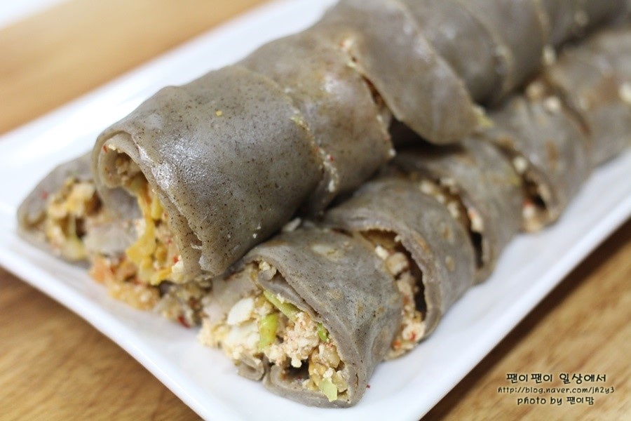 비 오는 날엔 메밀전병! 쫄깃한 메밀피에 아삭한 김치와 고기소 듬뿍