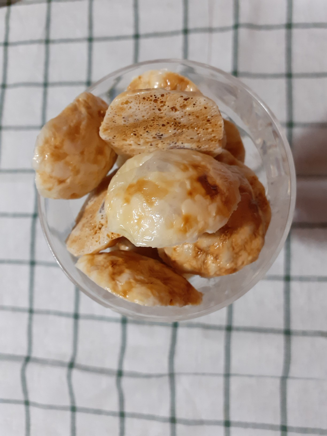 아몬드를 감싸듯, 위에 올린 치즈 조각을 손으로 살짝 눌러 두 장의 치즈가 아몬드를 감싸듯 서로 잘 붙도록 해주세요. 이렇게 하면 조리 중에 치즈가 분리되지 않고 예쁜 모양을 유지할 수 있습니다.