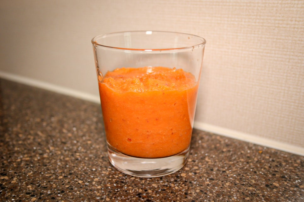 와, 맛있는 사과 당근 주스가 완성되었습니다! 믹서기에서 바로 잔에 따르거나, 취향에 따라 준비한 얼음을 몇 조각 넣어주면 더욱 시원하게 즐길 수 있습니다. 건강하고 맛있는 주스로 활기찬 하루를 시작해 보세요!