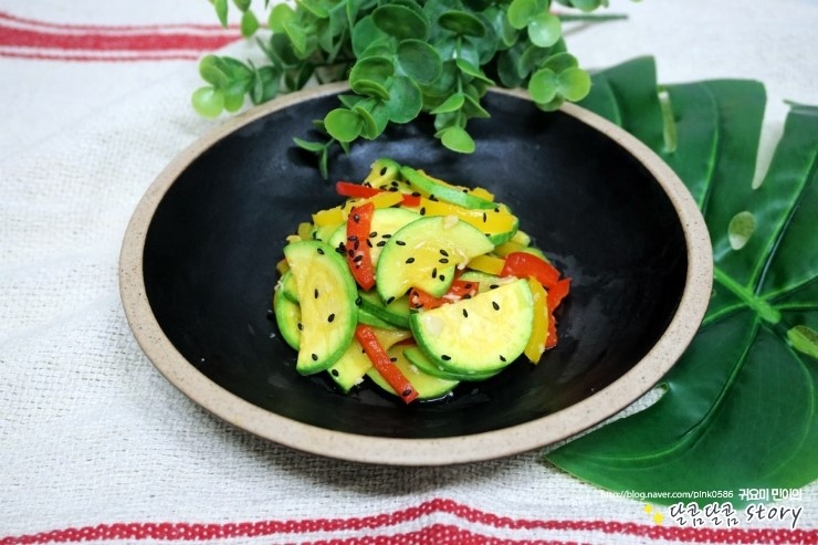 초록색 애호박과 알록달록 파프리카의 색감 조화가 정말 예쁘죠? 예전에는 소금으로만 간을 해서 볶아 먹었었는데, 새우젓을 넣고 만들면 감칠맛에서 확실히 차이가 나는 것을 느낄 수 있어요. 이번에는 채소만 넣었지만, 버섯이나 건새우 등을 추가해서 볶아도 정말 맛있답니다.