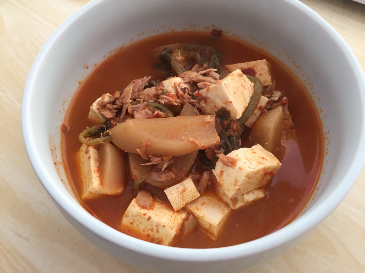 새콤한 총각김치로 끓이는 맛있는 참치찌개
