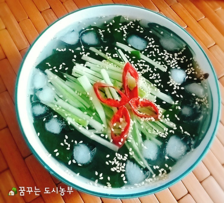 더운 여름철, 불 없이 5분 완성! 새콤달콤 오이 미역 냉국 만들기