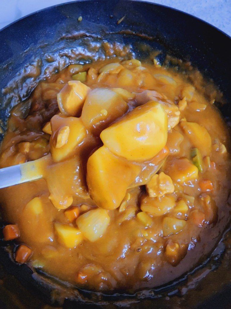 큼직한 감자와 채소가 듬뿍 들어가 푸짐하고 맛있는 카레가 완성되었습니다! 따뜻한 밥 위에 듬뿍 올려 맛있게 즐겨보세요. 아이들도 어른들도 모두 좋아하는 든든한 한 끼 식사가 될 거예요.^^