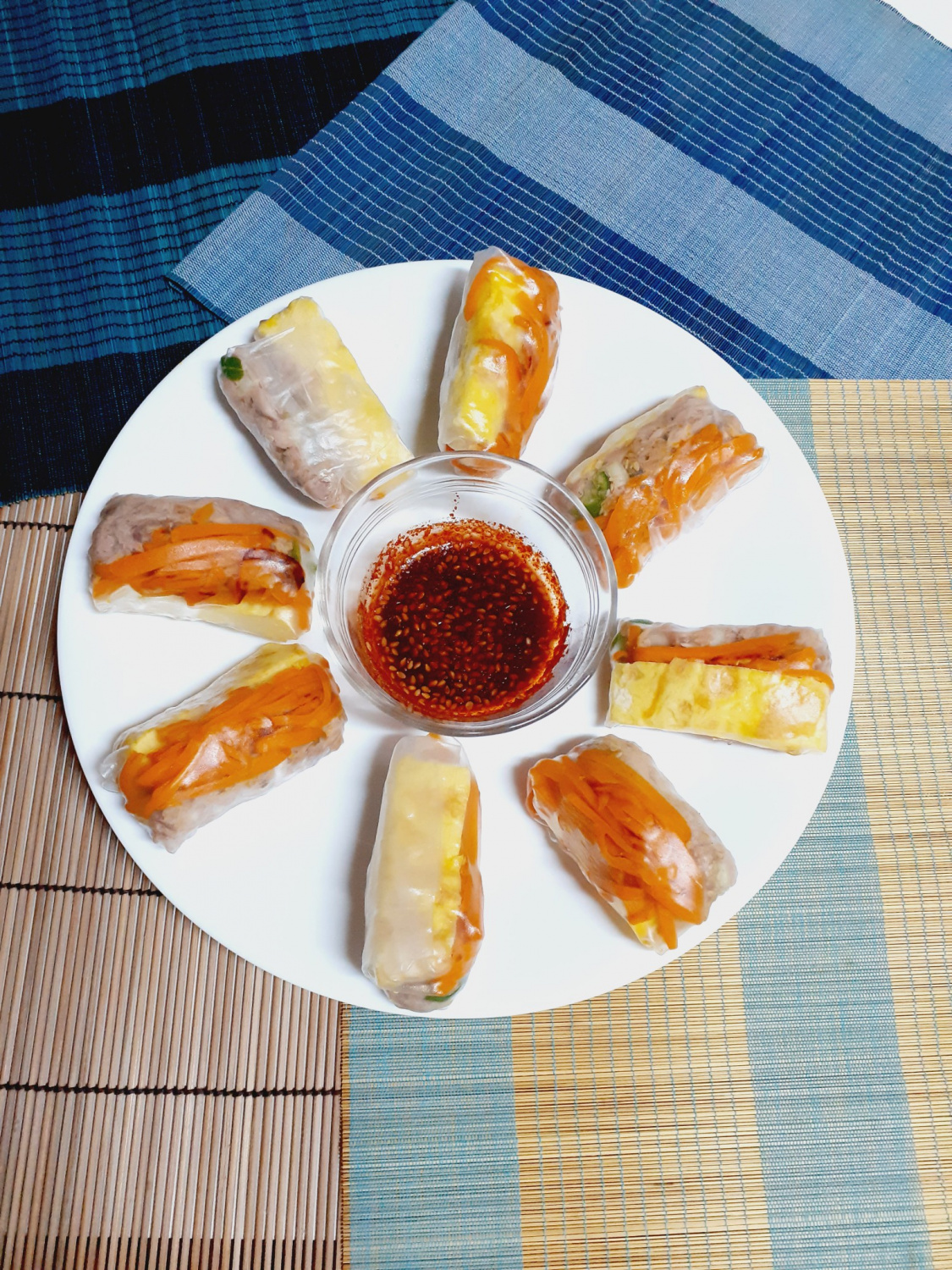 한 입 크기로 즐기기 좋은 라이스페이퍼 롤은 보기에도 좋고 맛도 훌륭하답니다! 신선한 당근과 부드러운 달걀 지단, 감칠맛 나는 참치 무침까지 어우러져 근사한 식사를 만들어 줄 거예요. 간단하면서도 다채로운 맛을 선사하는 이 레시피로 특별한 날은 물론, 평범한 날에도 맛있고 건강하게 즐겨보세요.