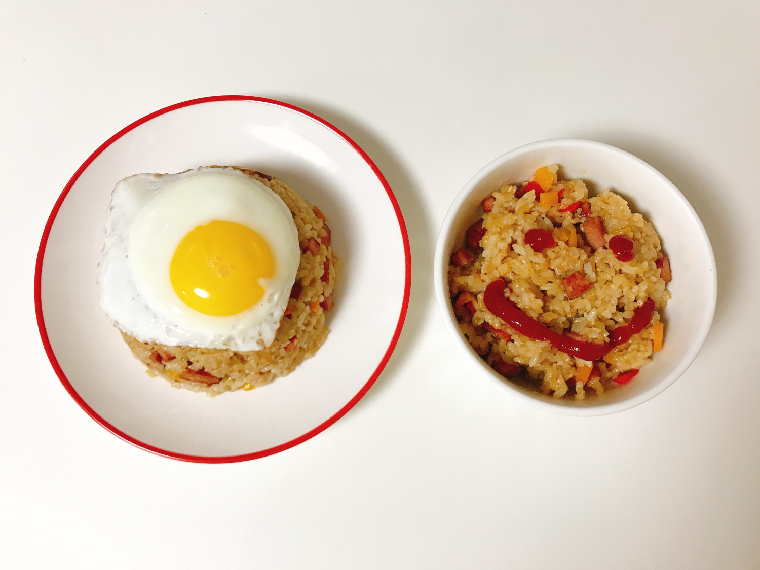 이렇게 멋진 비주얼의 파프리카 햄 볶음밥이 완성되었습니다! 반숙 계란 프라이 하나 올렸을 뿐인데도 정말 먹음직스럽죠?