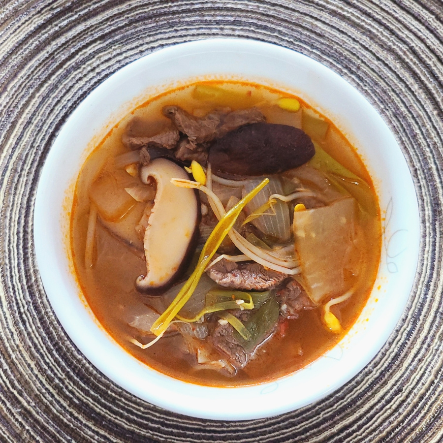 맑고 시원한 소고기 무국에 매콤한 양념과 신선한 채소를 듬뿍 넣어 경상도식으로 재해석한 얼큰 소고기 무국 레시피입니다. 추운 날씨나 얼큰한 국물이 당길 때, 밥 한 그릇 뚝딱 비우기 좋은 깊고 시원한 국물 맛을 자랑합니다. (본 레시피의 계량은 밥숟가락 기준입니다.)