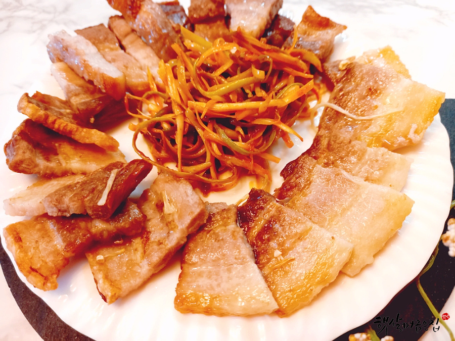 기본 재료- 두툼한 삼겹살 4줄 (약 500-600g)