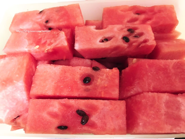 달콤한 속살 손질 및 보관: 수박의 가장 달콤한 속 부분은 길쭉하게 썰어 밀폐 용기에 차곡차곡 담아주세요. 이렇게 하면 냉장 보관 시 수박의 수분이 빠져나가는 것을 막아 신선함을 유지할 수 있습니다.