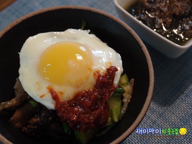 마지막으로, 계란 프라이를 노릇하게 부쳐 반찬 위에 올리고, 취향에 따라 약고추장 약간과 참기름을 살짝 둘러주세요. 모든 재료를 쓱쓱 비벼 맛있게 즐겨보세요! 여름 제철 채소로 건강하고 맛있는 비빔밥 한 그릇 완성입니다.