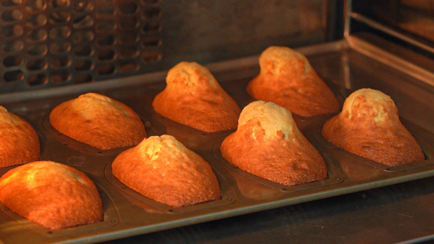 휴지가 끝난 반죽은 짤주머니에 담아주세요. 미리 버터를 꼼꼼하게 바르고 밀가루를 살짝 뿌린 마들렌 틀에 반죽을 70~80% 정도 채워줍니다. 190도로 예열된 오븐에서 10분간 구워주세요. 마들렌이 봉긋하게 올라오면 잘 구워진 것입니다.