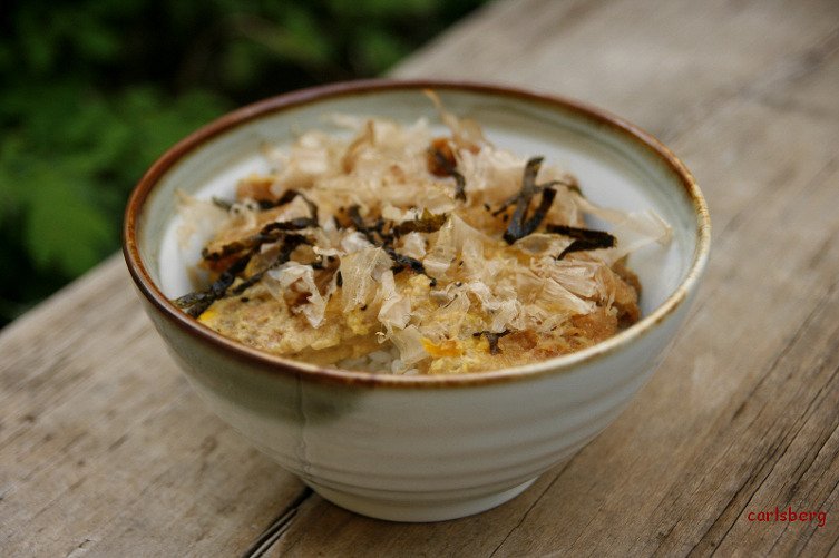 따뜻한 밥을 덮밥 그릇에 보기 좋게 담고, 그 위에 달걀옷을 입은 돈가스를 정성스럽게 올려주세요. 마지막으로 고명용 가쓰오부시를 솔솔 뿌려주면 완성입니다! 김이 모락모락 나는 덮밥 위에서 가쓰오부시가 춤추듯 흩날리는 모습이 정말 먹음직스럽답니다. 김가루와 검은깨를 살짝 더해주면 풍미와 비주얼이 한층 더 업그레이드됩니다.