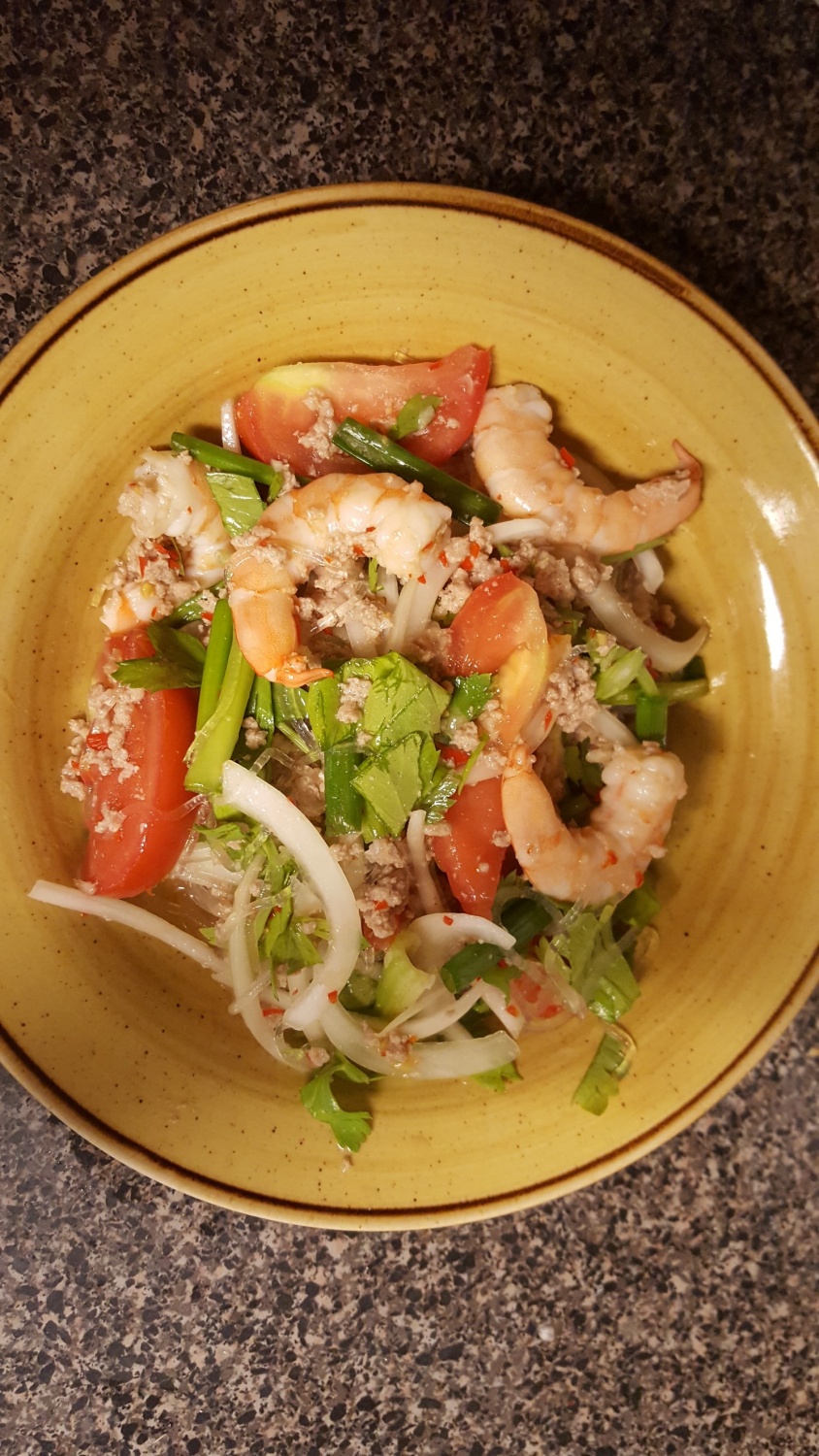 입안 가득 퍼지는 이국적인 풍미의 얌운센이 완성되었습니다! 신선한 채소와 탱글한 새우, 촉촉한 고기가 어우러져 다채로운 식감을 선사할 거예요.