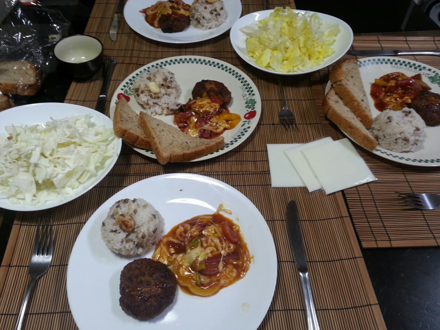 주재료- 햄버거 패티 4개 (기호에 따라 소고기, 돼지고기 혼합 또는 시판용 사용)