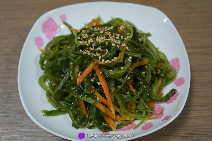먼저, 요리의 핵심 재료인 염장 미역줄기를 준비해주세요.
