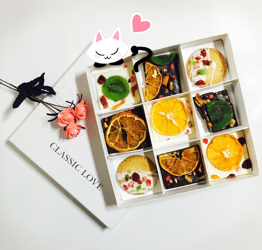 초콜릿이 완전히 굳기 전에 준비해둔 건조 과일이나 견과류를 원하는 대로 장식해 주세요. 알록달록한 건조 베리류나 상큼한 건조 망고, 혹은 고소한 견과류를 흩뿌려주면 더욱 먹음직스러운 비주얼을 완성할 수 있습니다. 장식이 끝나면, 완성된 초콜릿 판을 냉장고에 넣어 약 5분간만 굳혀주세요. 너무 오래 굳히면 초콜릿이 딱딱해져 부러뜨리기 어려울 수 있으니 주의하세요. 5분 후 꺼내어 적당한 크기로 잘라내면 맛있는 바크 초콜릿 완성입니다!