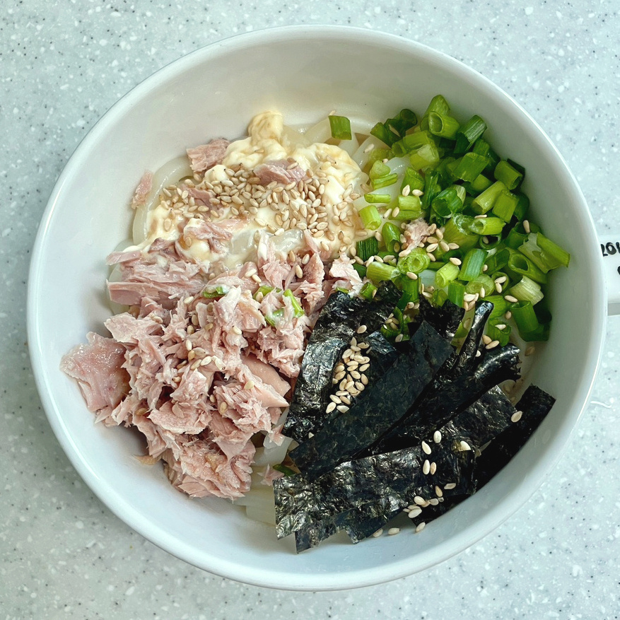 누구나 좋아하는 마요네즈 풍미 가득! 5분 완성 참치 비빔 우동 레시피