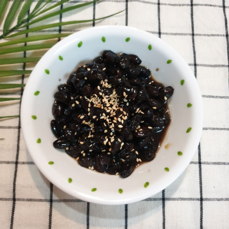 국물이 거의 졸아들어 자박해지면 물엿 1큰술을 넣고 윤기를 더해주세요. 불을 끄고 통깨를 솔솔 뿌려주면 맛있는 서리태 콩자반 완성입니다!