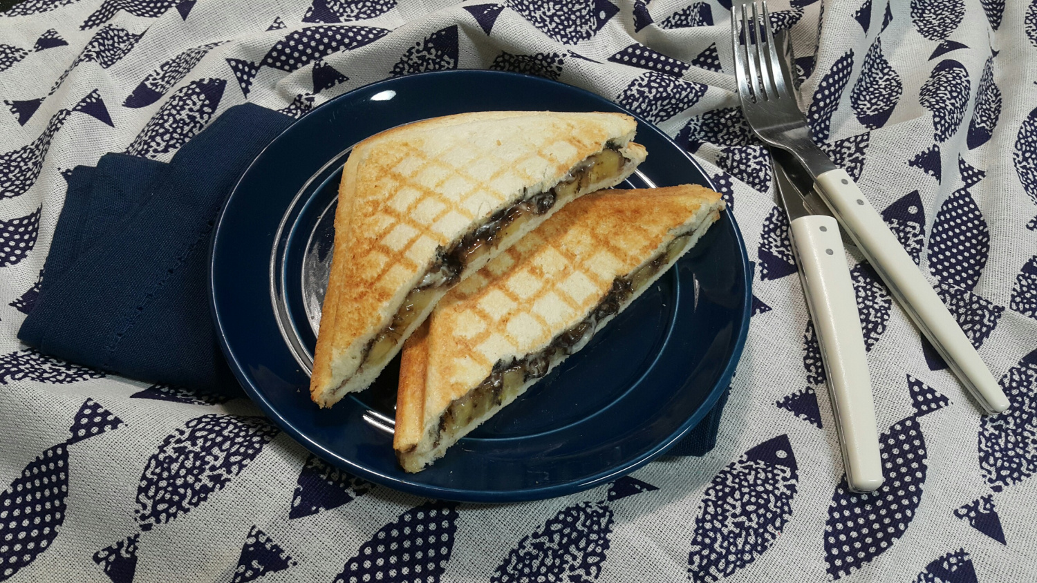 이제 샌드위치처럼 만든 식빵을 토스트 메이커나 프라이팬에 넣고 노릇하게 구워줍니다. 토스트 메이커를 사용하면 간편하게, 프라이팬을 사용할 경우 중약불에서 버터를 살짝 녹여 구우면 더욱 고소한 풍미를 즐길 수 있습니다. 양면이 황금빛 갈색이 될 때까지 구워주면 달콤하고 맛있는 쿠키앤밀크 스프레드 바나나 토스트 완성입니다.