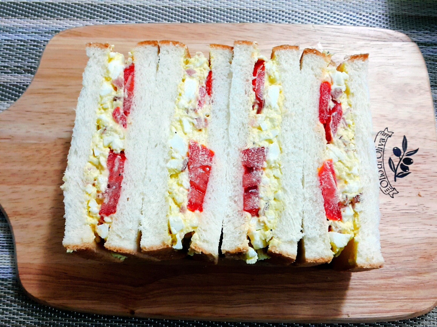 다른 식빵으로 덮어준 뒤, 먹기 좋은 크기로 잘라주면 상큼한 토마토와 든든한 햄 에그가 어우러진 맛있는 햄 에그 샌드위치 완성입니다! 간단하지만 맛은 보장되는 레시피입니다.