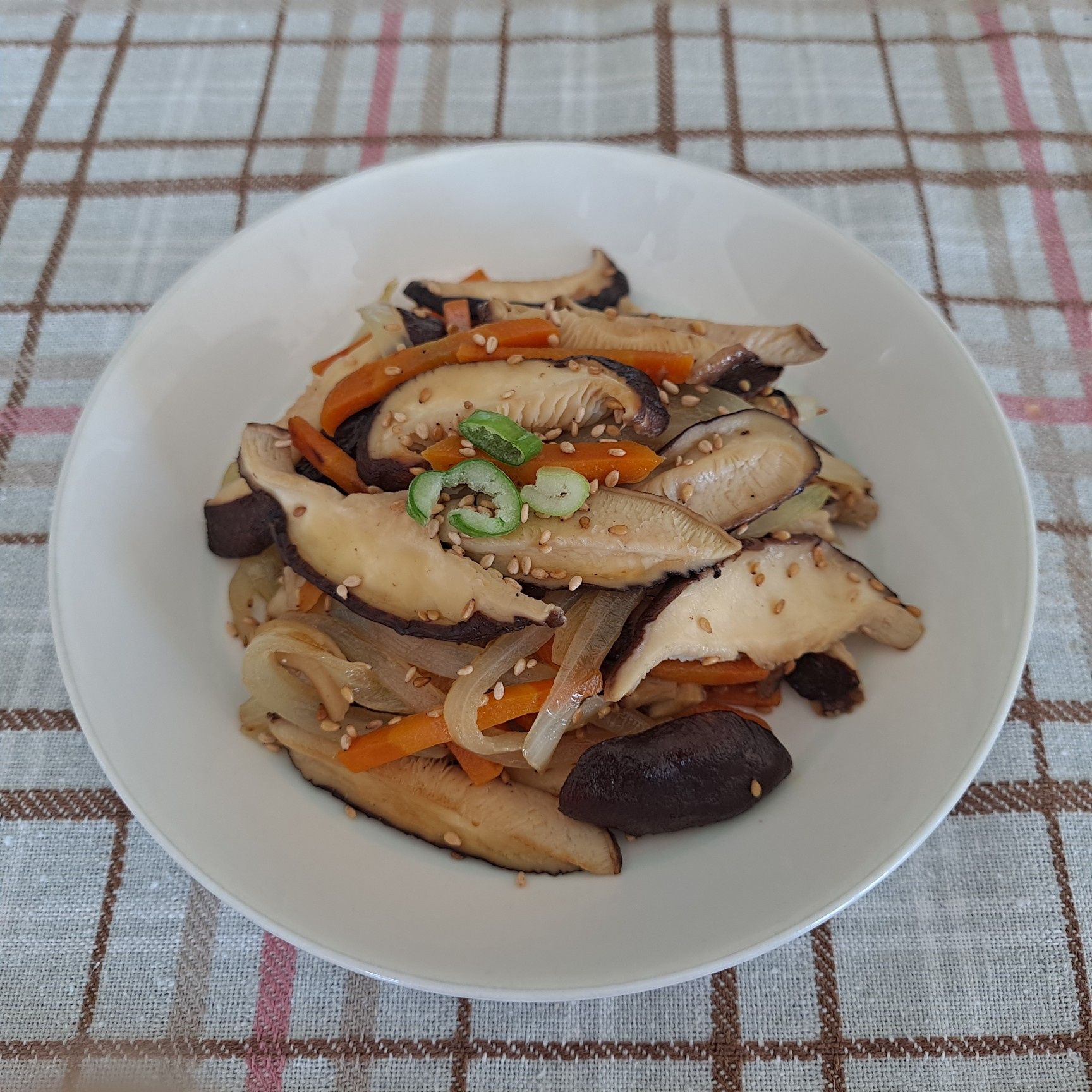 향긋하고 쫄깃한 식감이 살아있는 맛있는 표고버섯볶음이 완성되었습니다! 따뜻한 밥반찬으로도, 도시락 반찬으로도 손색없는 건강하고 맛있는 요리랍니다. 맛있게 즐기세요!