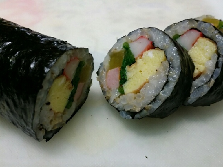 마지막으로 완성된 김밥을 먹기 좋은 크기로 썰어주면 됩니다. 칼에 물을 살짝 묻히거나 참기름을 바르면 밥알이 달라붙지 않고 깔끔하게 썰 수 있어요. 이제 건강하고 맛있는 아마란스 현미 김밥을 즐겨보세요!
