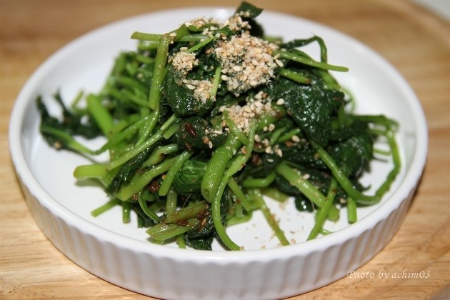 Your fragrant Chamnamul seasoned with doenjang is now ready! Chamnamul is known for its nutritional benefits, including beta-carotene which is good for eye and skin health, and its high fiber content aids digestion and can be helpful for those on a diet. Enjoy this delightful and healthy side dish!
