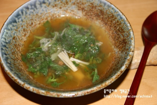 Simmer for just a little longer to allow all the ingredients to meld together, and your aromatic and savory mugwort soybean paste soup is complete! Even if the mugwort seems a bit tough initially, it will soften beautifully when cooked in the soup. Enjoy this delightful soup with a warm bowl of rice!