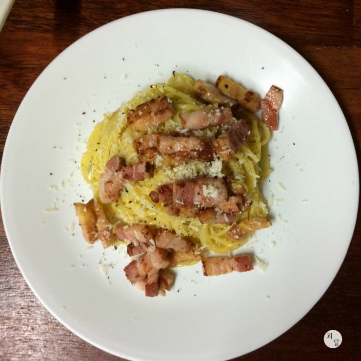 Dice the bacon into 1cm cubes and place them in a preheated pan. Cook the bacon until it’s crispy and golden brown. Since bacon releases its own fat, you usually don’t need to add any extra oil. Once cooked, remove the bacon from the pan and place it on a paper towel-lined plate to drain any excess grease. (Tip: Don’t discard the rendered bacon fat! It’s packed with flavor and perfect for coating the pasta.)