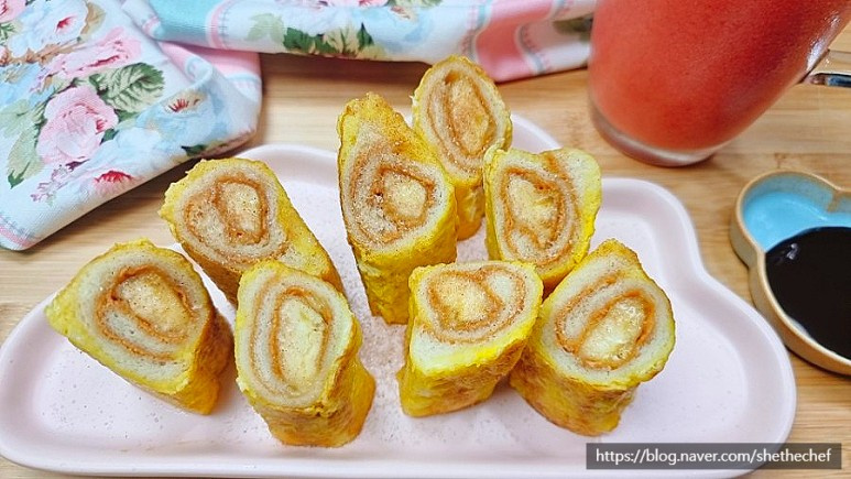 I occasionally enjoy watching the mukbang (eating show) program ‘Mat-issneun Yeo-seok-deul’ (Tasty Guys). On one episode, Chef Jeong Ho-young was making French toast, and I watched intently. He made French toast with banana inside, and it seemed easy to make and delicious, so I immediately tried it. It’s simple to prepare and makes a great snack. It would be even more fun to make with children. This recipe is easy and tastes wonderful.