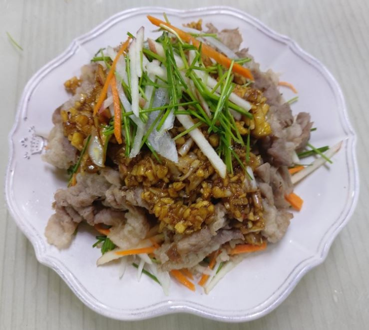 Begin by arranging the oyster sauce-stir-fried bean sprouts on the plate. Next, pile the mixed vegetables generously on top of the bean sprouts. Finally, add the cooked beef brisket. Generously drizzle the prepared special salad dressing over everything. Don’t be shy with the dressing; it brings all the flavors together.