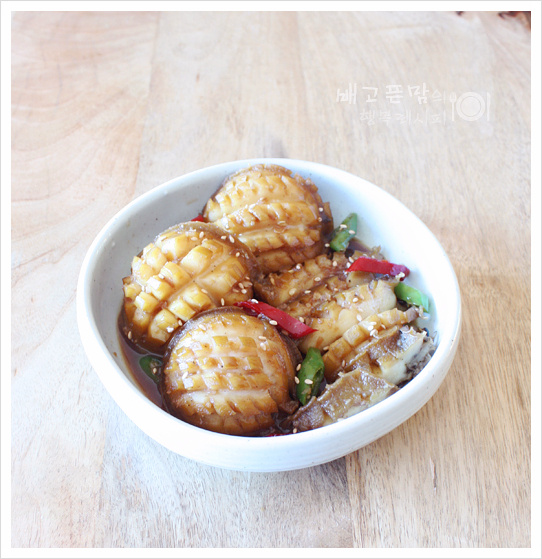Once the braising is complete, turn off the heat and let it cool slightly. If the abalone pieces are large, cut them into bite-sized pieces. Arrange the braised abalone attractively in a serving dish and sprinkle generously with toasted sesame seeds. Enjoy this delicious braised abalone with a bowl of warm rice!