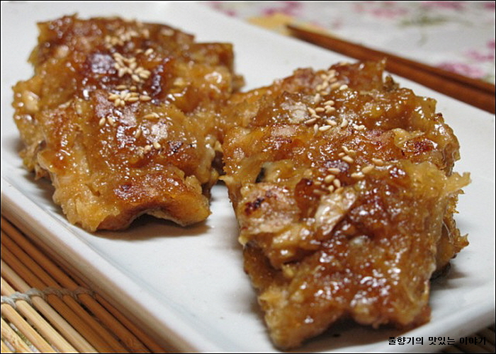 Arrange the perfectly pan-fried dried pollack ribs on a plate. Sprinkle a pinch of toasted sesame seeds over the top for a nutty aroma and attractive garnish. Your delicious dried pollack ribs, loved by everyone, are now ready to be enjoyed! Serve with a warm bowl of rice for a satisfying meal.