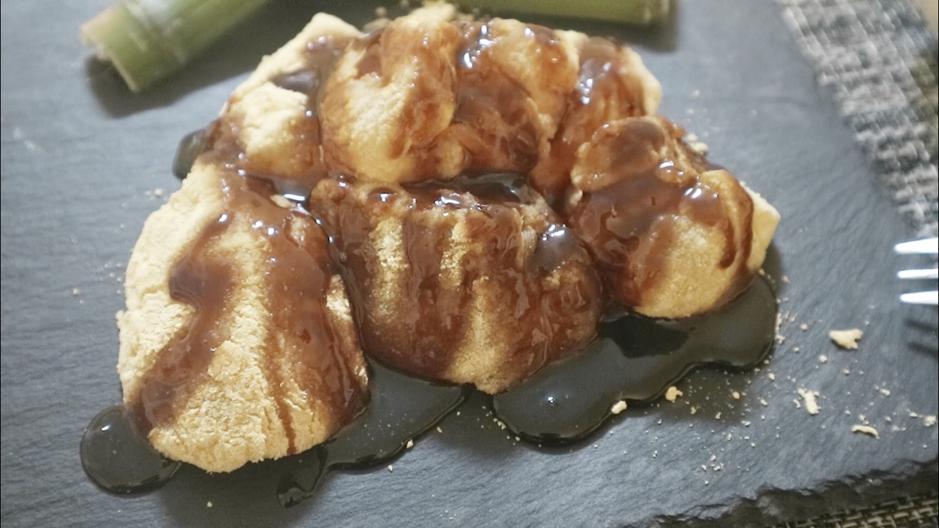 Finally, drizzle the sweet sugar syrup you made earlier over the kinako-coated warabi mochi to your liking. Your delicious homemade warabi mochi is now complete! Enjoy the perfect harmony of chewy mochi, nutty kinako, and sweet syrup.
