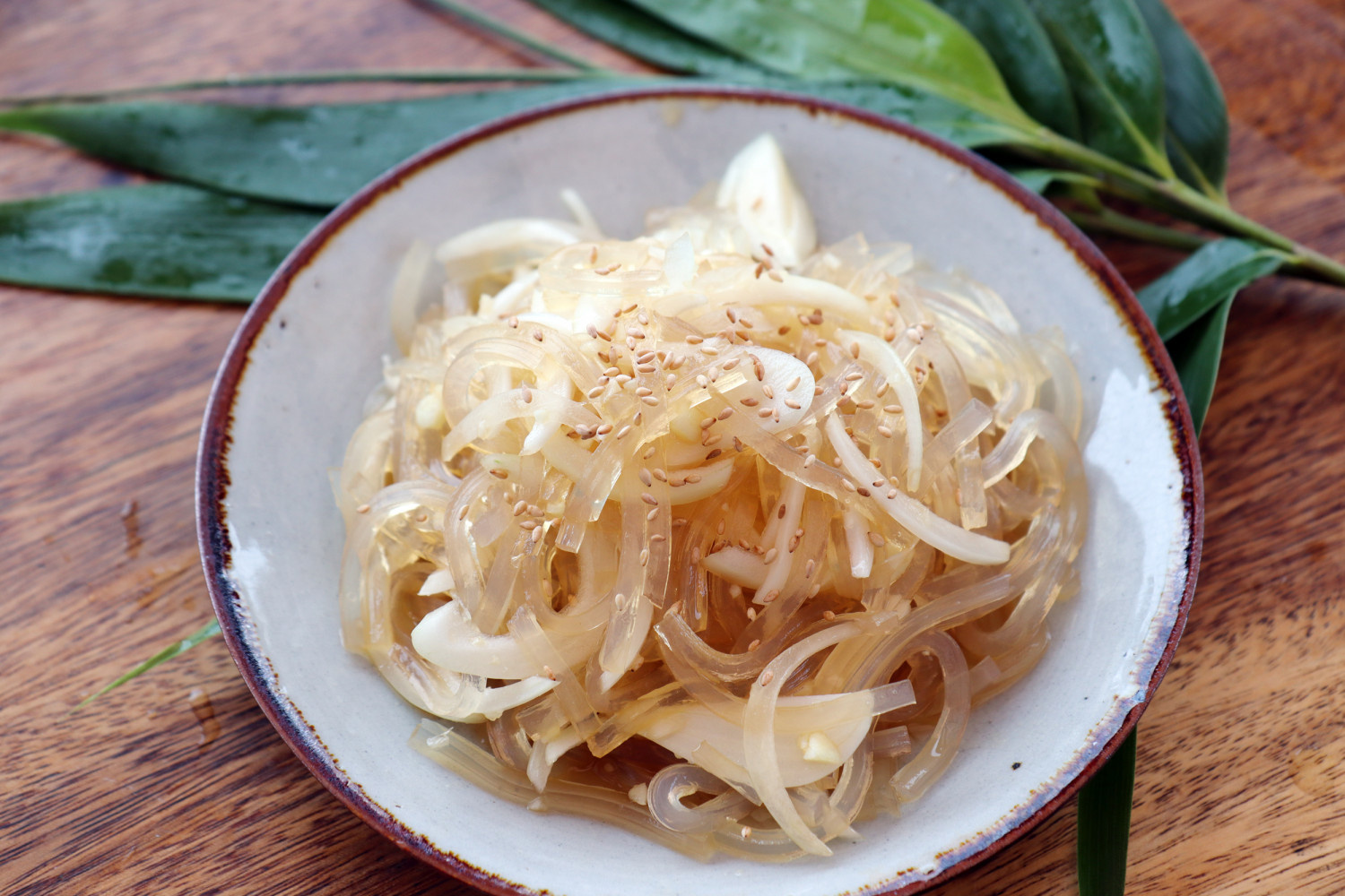 Place the prepared agar-agar and sliced onion in a larger bowl. Pour the prepared dressing over them. Gently toss the ingredients with your hands, ensuring the dressing coats the agar-agar and onion evenly. Taste and adjust the seasoning if needed, adding a little more salt for savoriness or sugar for sweetness.