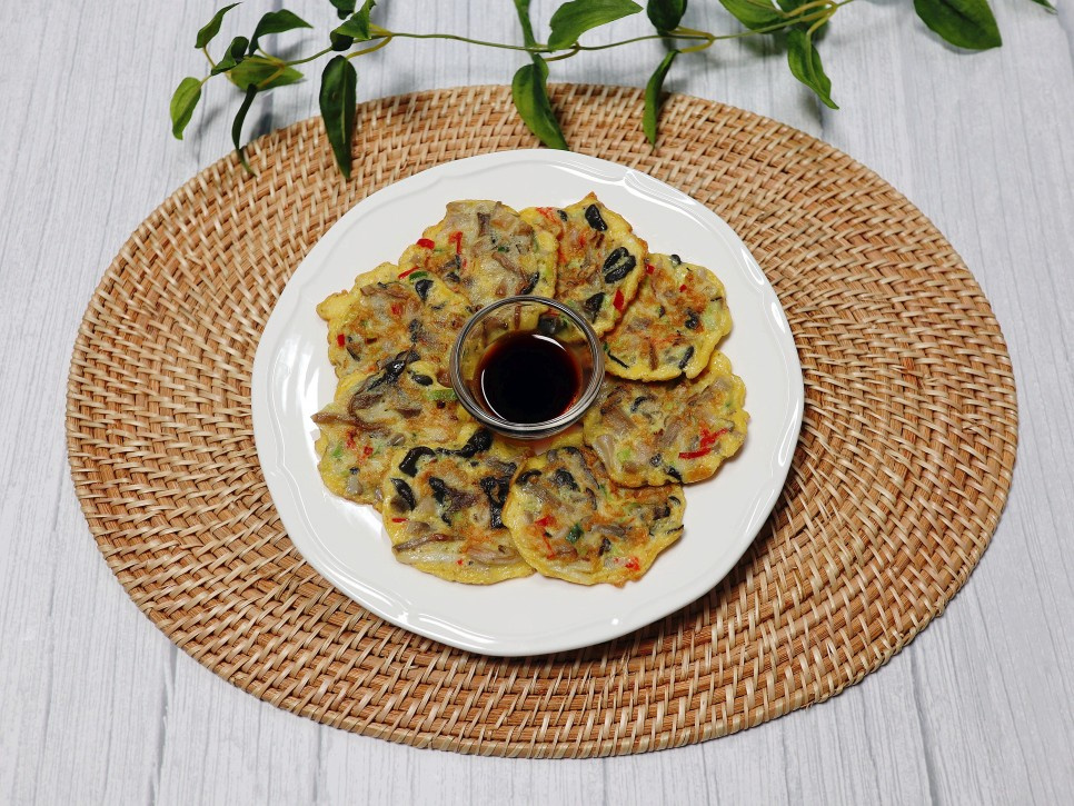 For an extra flavor boost, serve with a simple dipping sauce. In a small dish, mix 1 tablespoon soy sauce, 0.5 tablespoon vinegar, 0.5 tablespoon water, and a little bit of corn syrup or honey. This sweet and tangy sauce perfectly complements the savory pancakes.