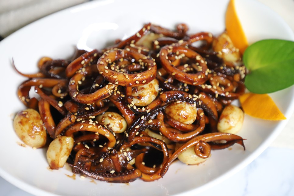 Add Squid and Simmer: Now, add the prepared squid to the sauce and let it simmer. It’s a good idea to briefly blanch the squid in boiling water before adding it to the sauce. This helps to release less moisture and reduces simmering time. (Tip: You can also simmer the fresh squid directly in the sauce, but it might take a little longer to cook.)