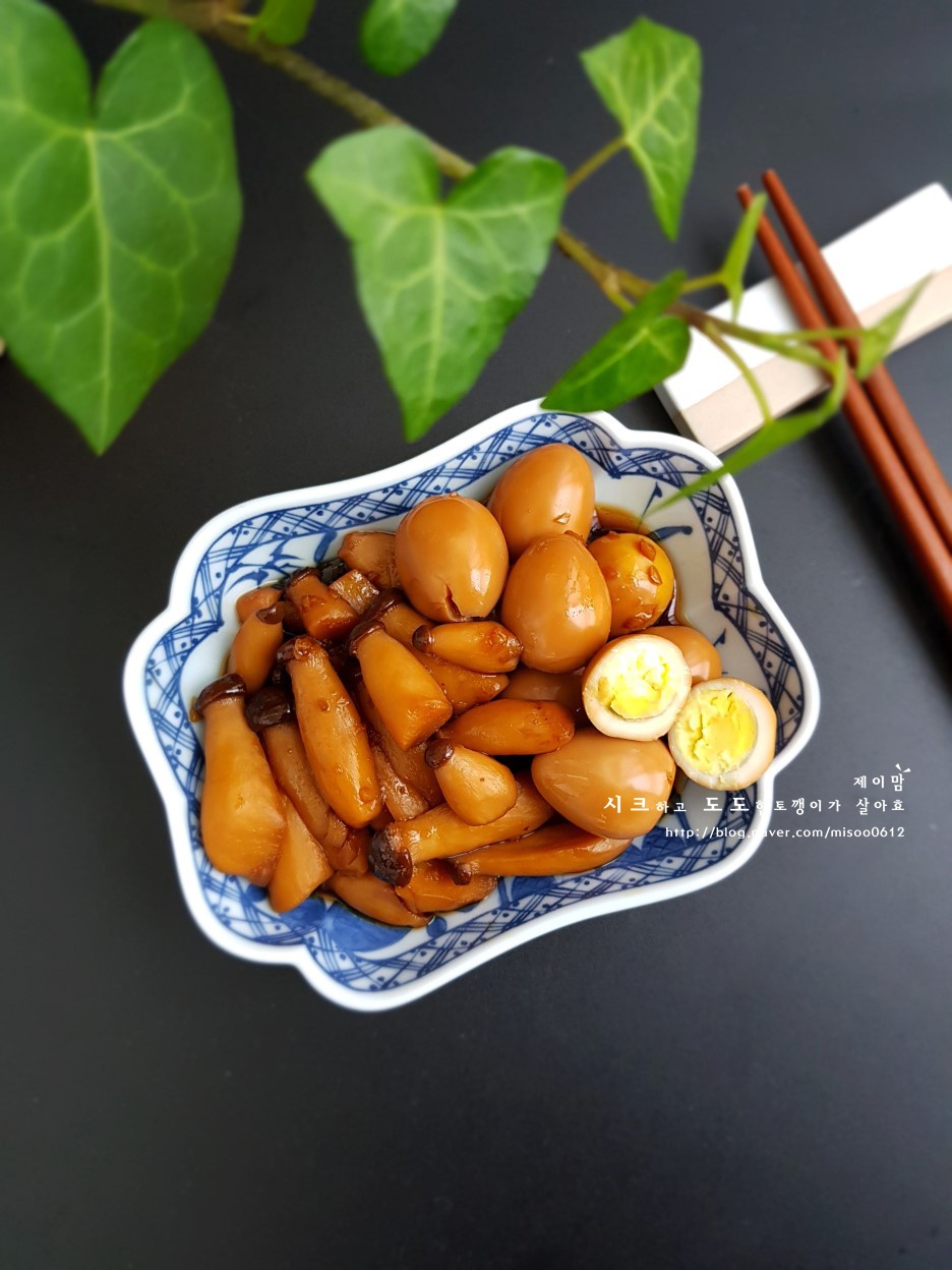 Serve over warm rice for an incredibly delicious meal! Enjoy this delightful combination of chewy mushrooms and savory braised eggs!
