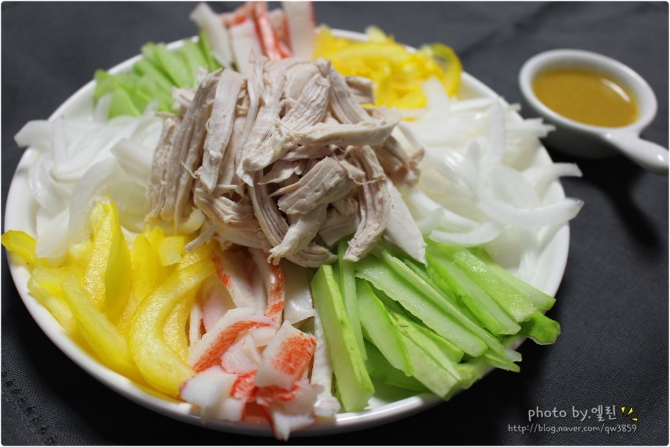 This chicken breast cold salad is not only delicious but also great for your diet! It’s a satisfying dish, especially perfect for hot summer days. 🙂 For more details, visit http://blog.naver.com/qw3859