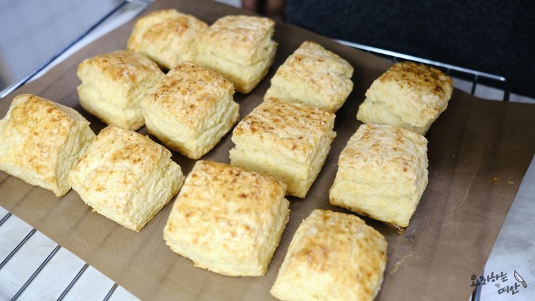 Arrange the cut scones on a baking sheet lined with parchment paper or a silicone baking mat. Brush the tops of the scones with any remaining beaten egg. This egg wash will give them a beautiful golden-brown sheen when baked.