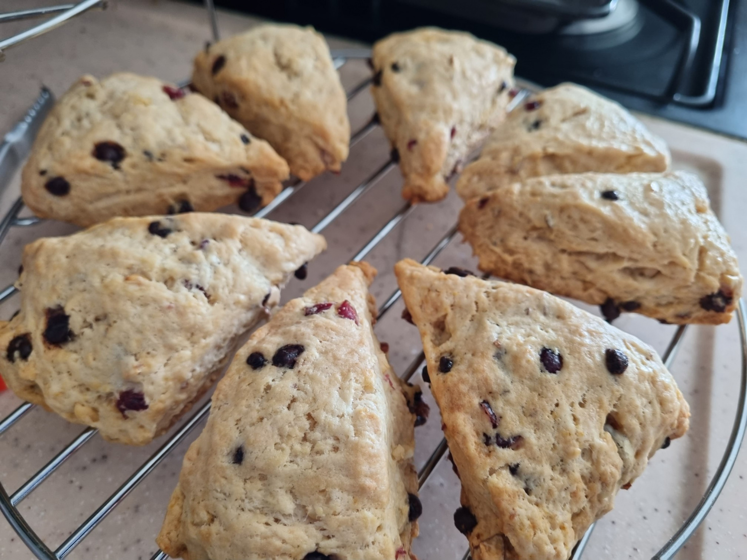 Rich Cream Cheese Scones with Nuts, Chocolate Chips, and Cranberries